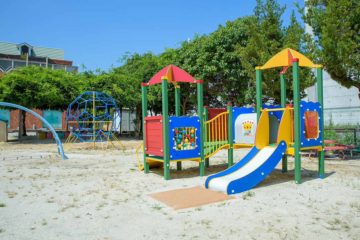 本園には広々とした園庭があり、四季折々の樹木(みかん・銀杏・桜・林檎・びわ・どんぐり・藤棚)に花や野菜の花壇などがあります。みかんの木はいつも子どもたちが木登りを楽しんでおり、自然環境にも大変恵まれています。