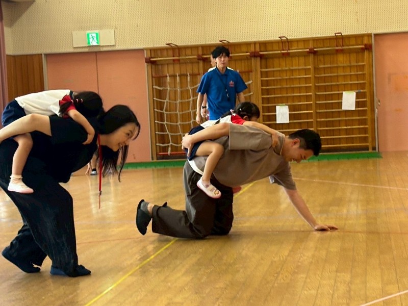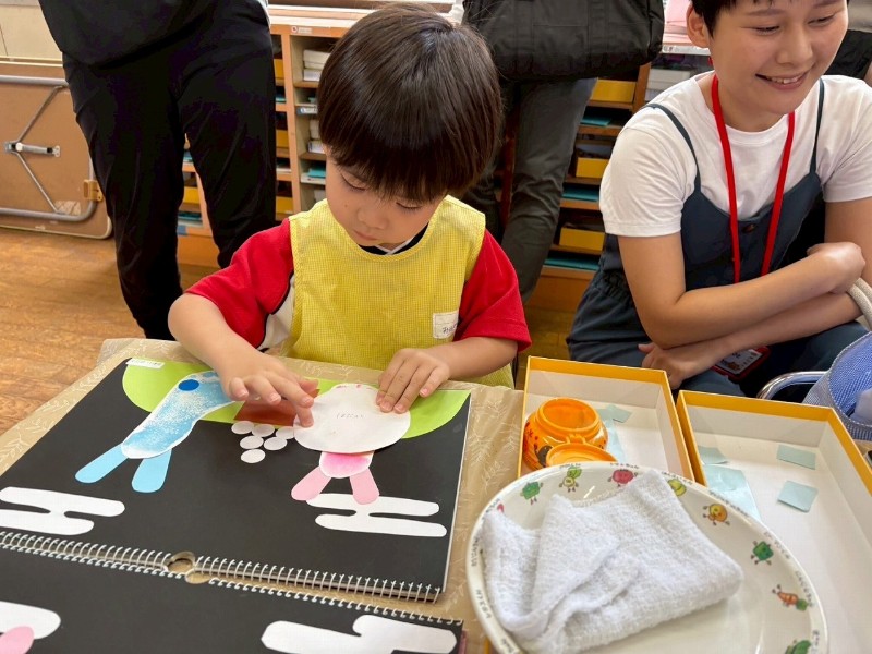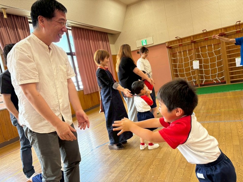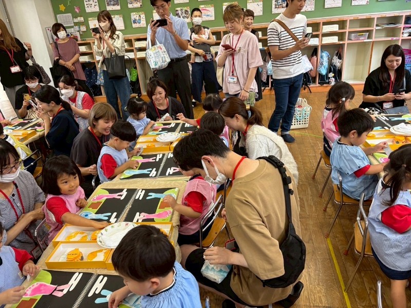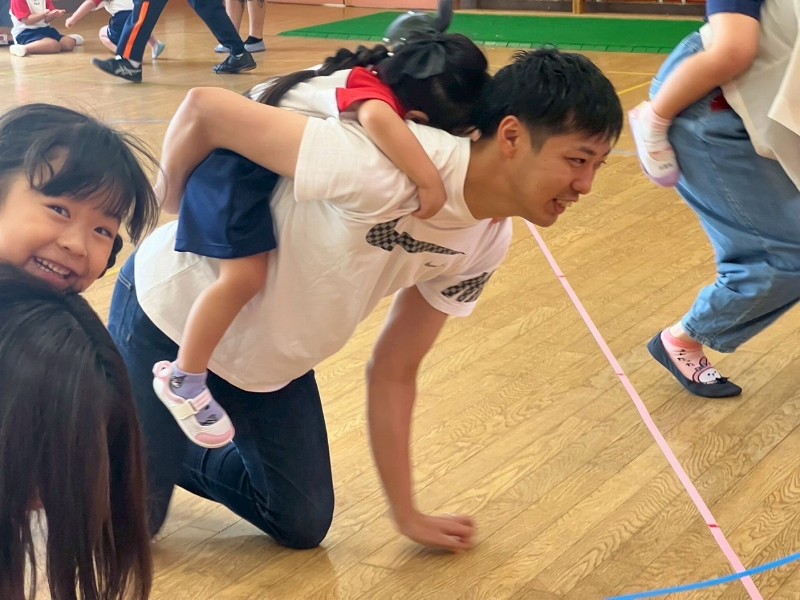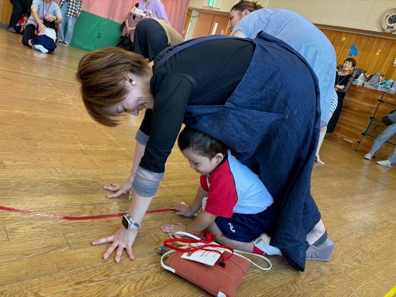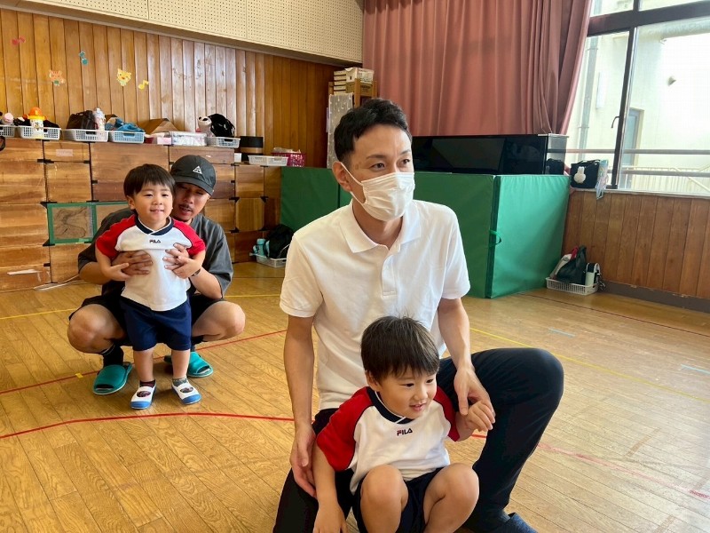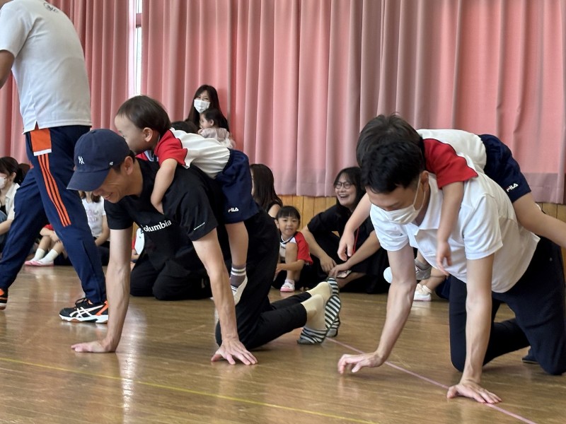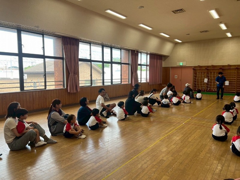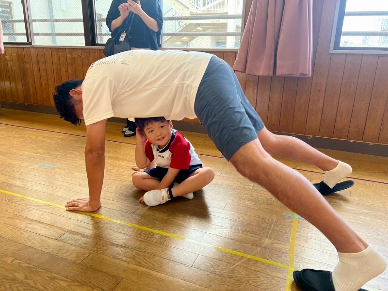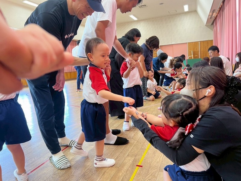 年少組さんの保育参観☆朝の会から9月の製作をみて頂きました。親子体操はでは、課外体操教室の堺先生とお家の方と一緒にうさぎや他の生き物になってジャンプをしたり、大繩へびタロウで縄跳びに繋がっていく基礎となる遊びを行いました。保護者の方と一緒にたくさんの笑顔がみられました。