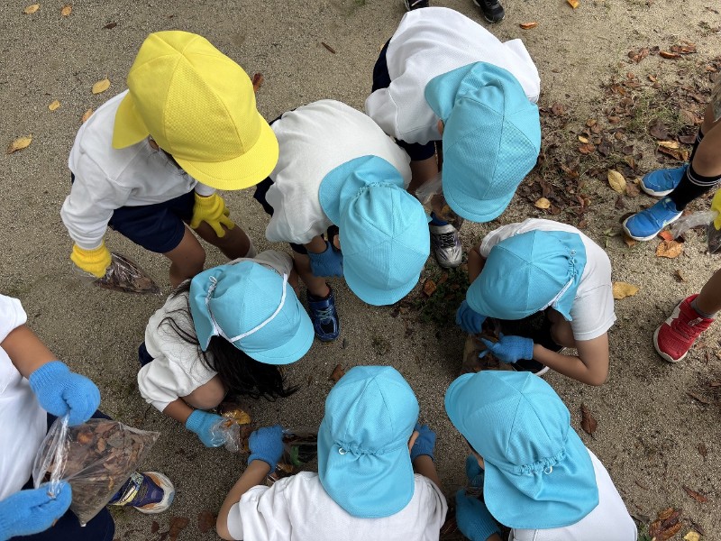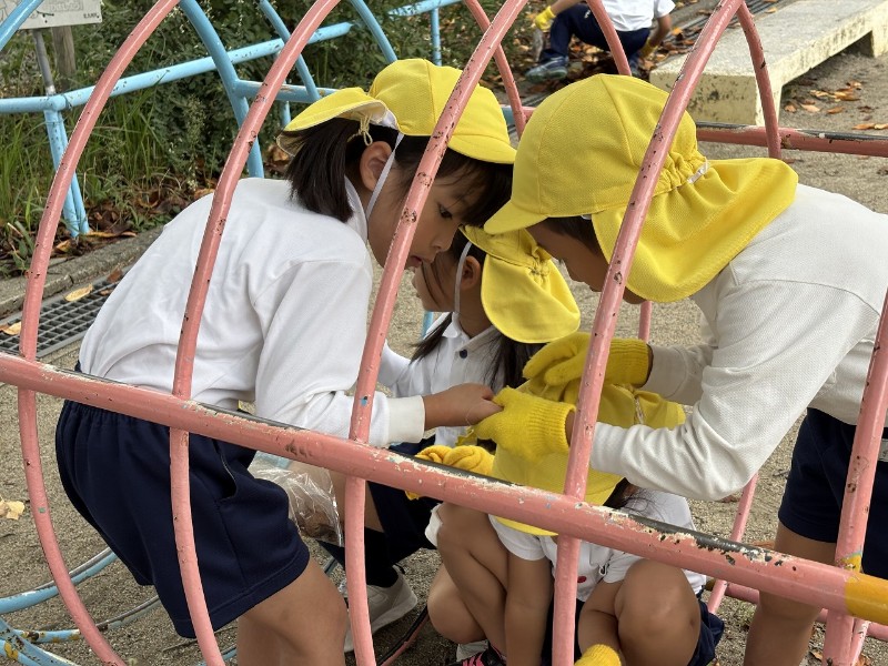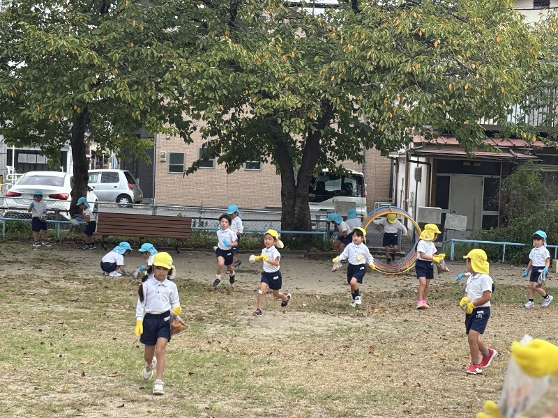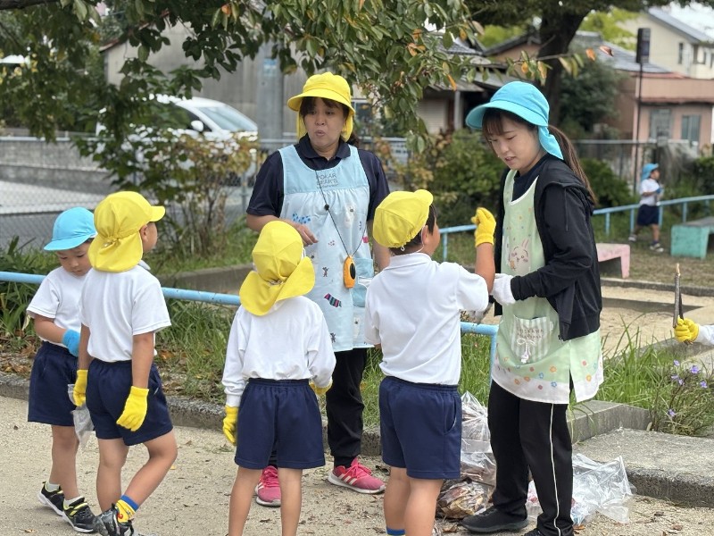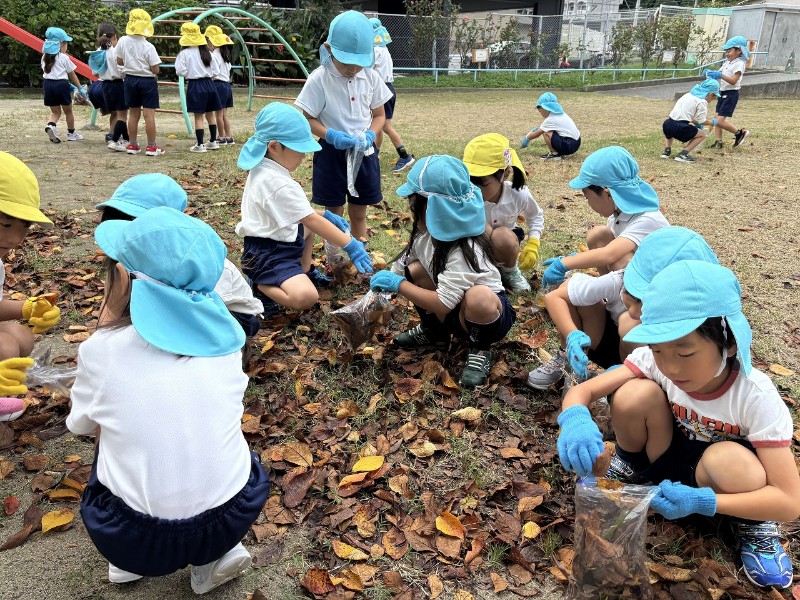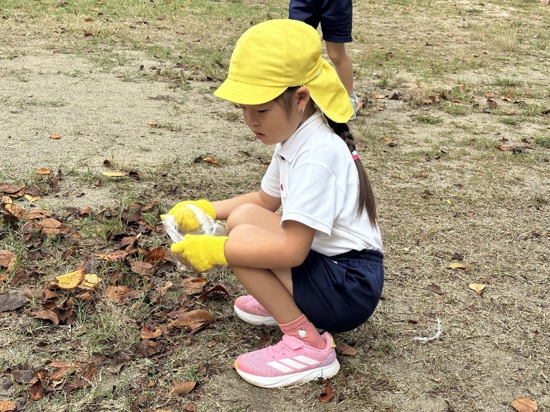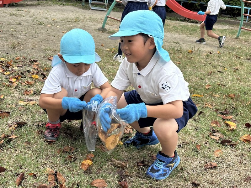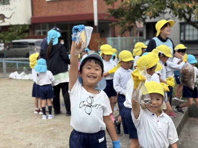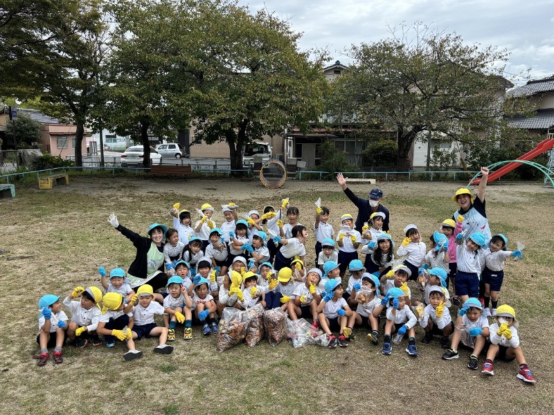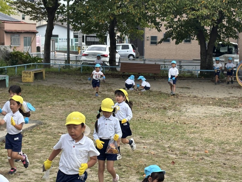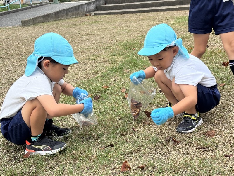 幼稚園前にある公園のゴミ(運)拾いをしました。日頃から町内の方々がきれいにお掃除をしてくださっているのですが、今日は僕たち!私たちに任せて!との思いで取り組みました。
