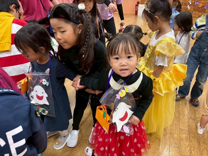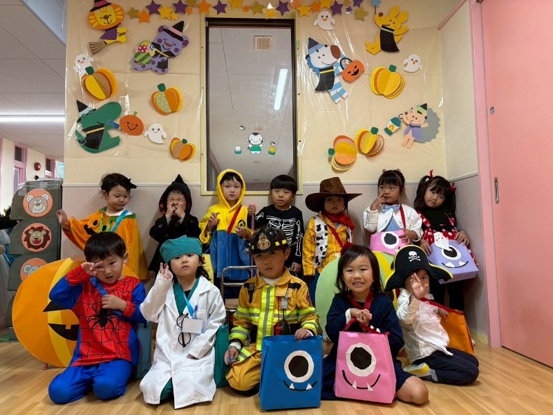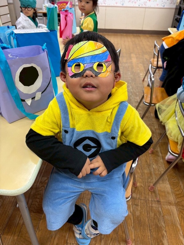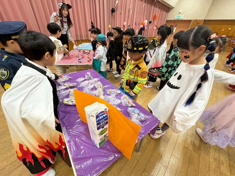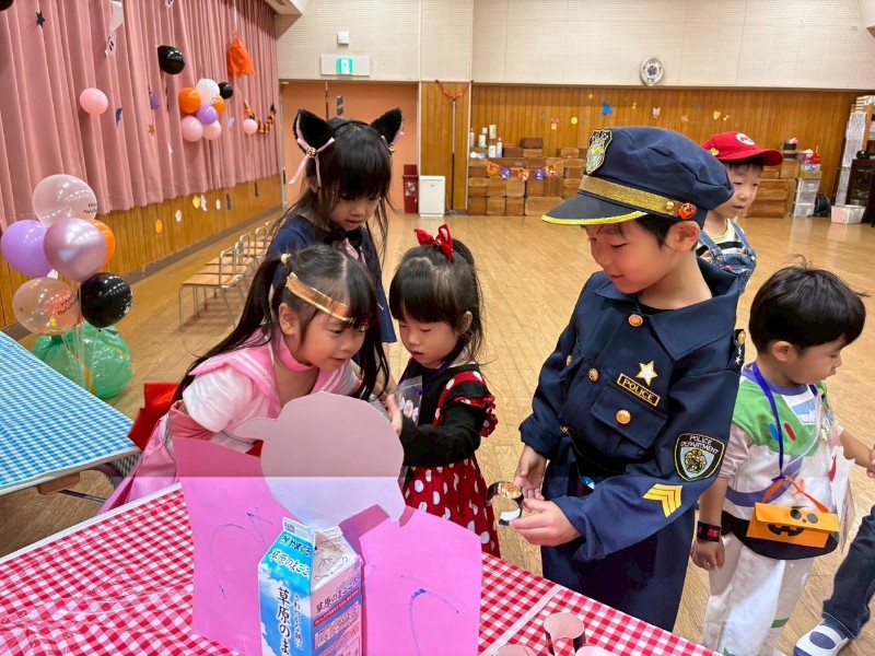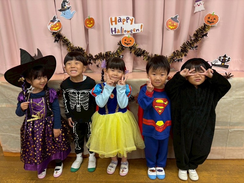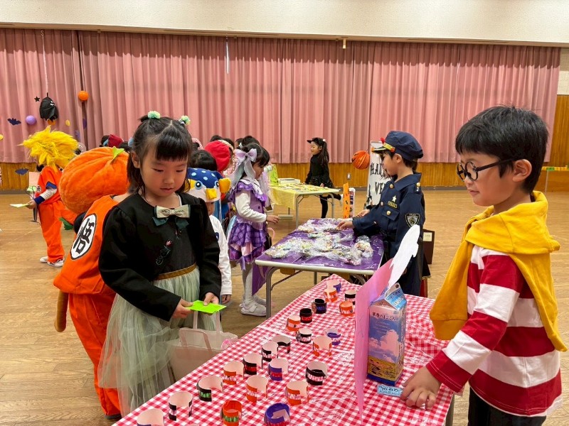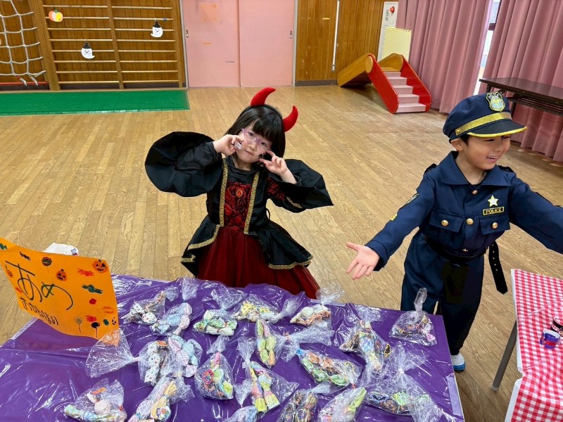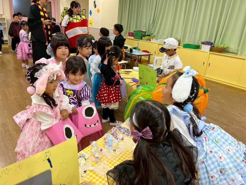 午前中は、年長組さんが招待してくれたハロウィンイベント&お買い物ごっこを楽しみました。優しく、小さい子のお世話をする姿にまたまた成長を嬉しく思いました。年長組さん、ステキなパーティーに招待してくれてありがとう♡そして、たくさんのお買い物グッズを作ってくれてありがとう♡みんなで仮装とお買い物ごっこも楽しみました。