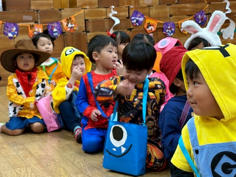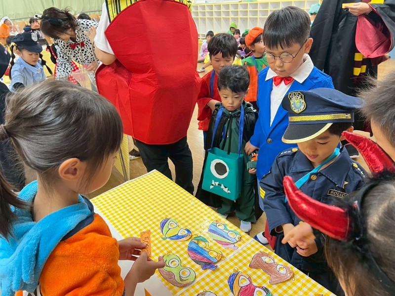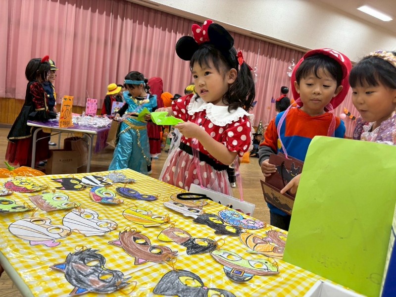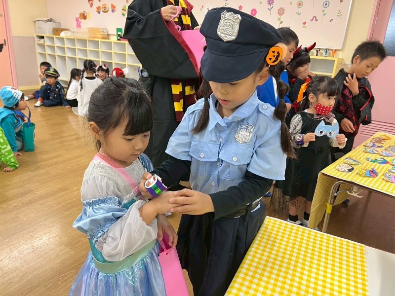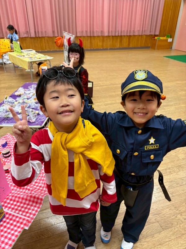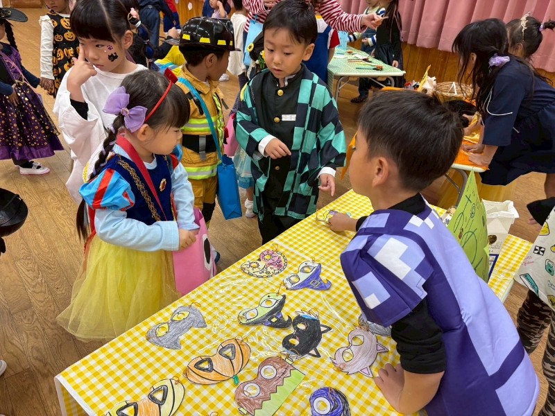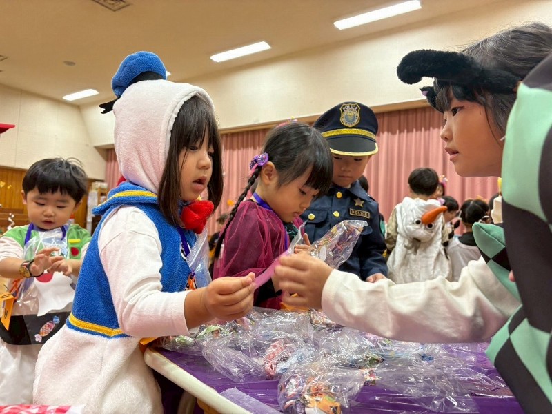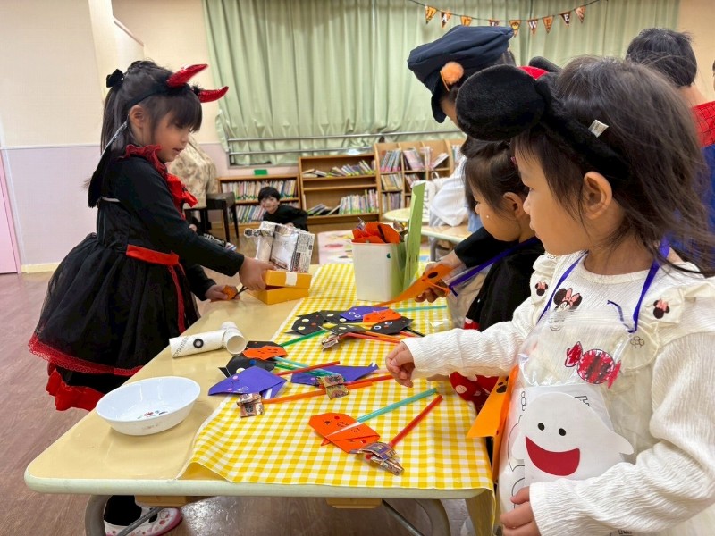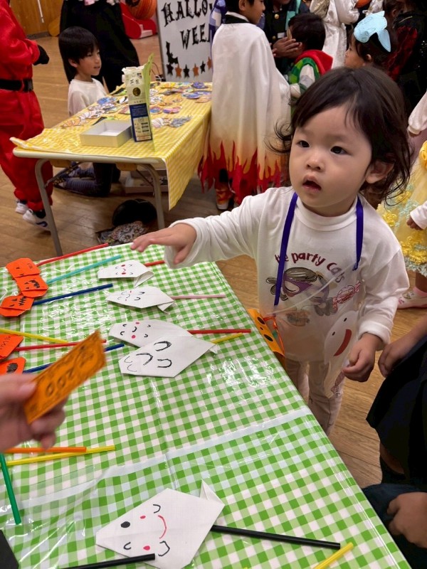 午前中は、年長組さんが招待してくれたハロウィンイベント&お買い物ごっこを楽しみました。優しく、小さい子のお世話をする姿にまたまた成長を嬉しく思いました。年長組さん、ステキなパーティーに招待してくれてありがとう♡そして、たくさんのお買い物グッズを作ってくれてありがとう♡みんなで仮装とお買い物ごっこも楽しみました。