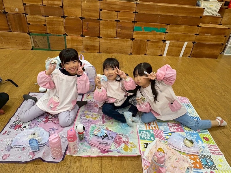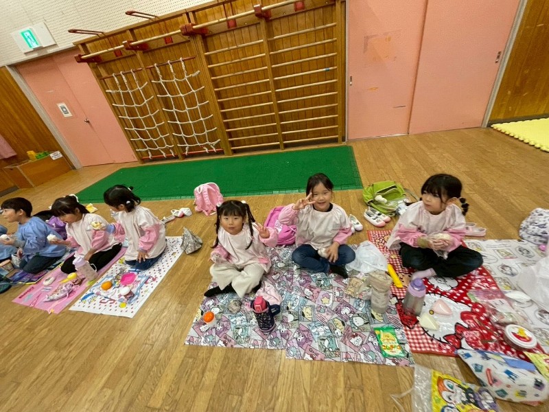 昼食は、幼稚園に戻って2クラスで仲良く一緒に食べました☆
