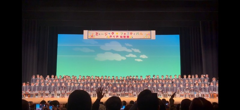 第1部は、年少・年中組さんは学年ごとに合唱・英語の歌・合奏を、年長組さんはクラスごとに合唱・英語の歌・合奏を披露いたしました。1部の最後は、年少・年中・年長組さんがみんなで2曲合唱しました。迫力満点でした☆ インフルエンザが流行り、後半は練習が思うように出来ませんでしたが、みんなのこれまでの努力が報われたように素晴らしい奏が響き渡っていました。第2部は、歌のお姉さん「まいまいちゃん」が親子で一緒にふれあい、楽しい歌の時間を飾ってくださいました。