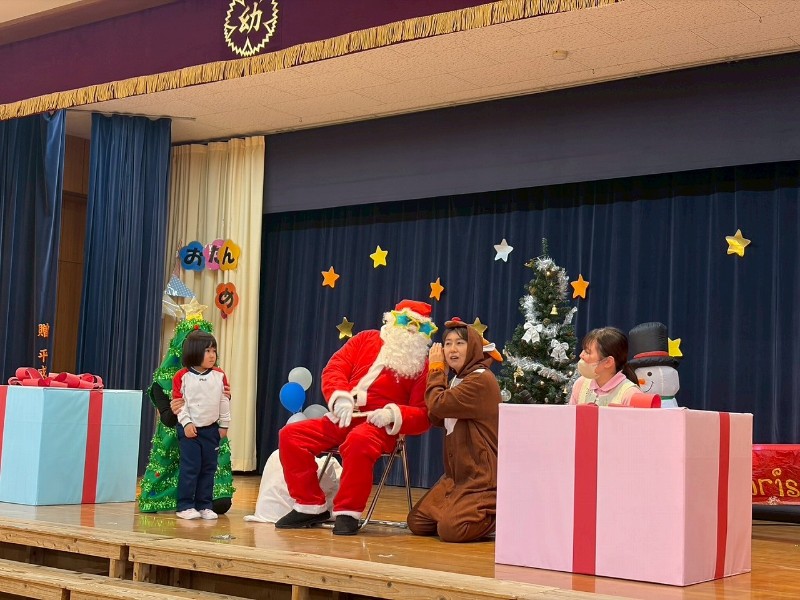 先生方からのお楽しみ(出し物)は、「ねぼすけサンタさん」の劇でした。