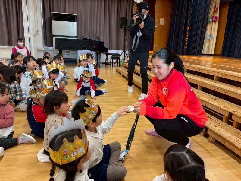 とーってもキュートな羽田選手♡子どもたちからの質問にも丁寧に答えてくださいました。