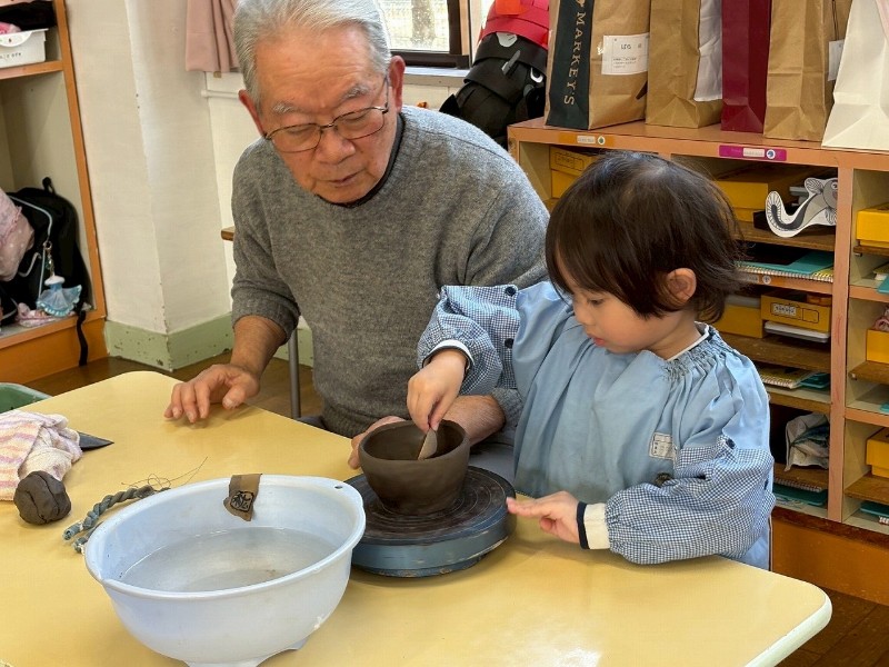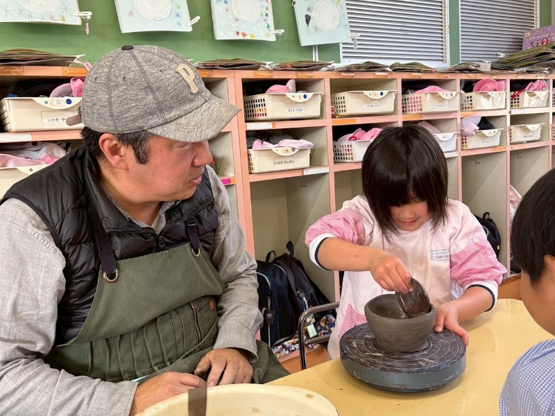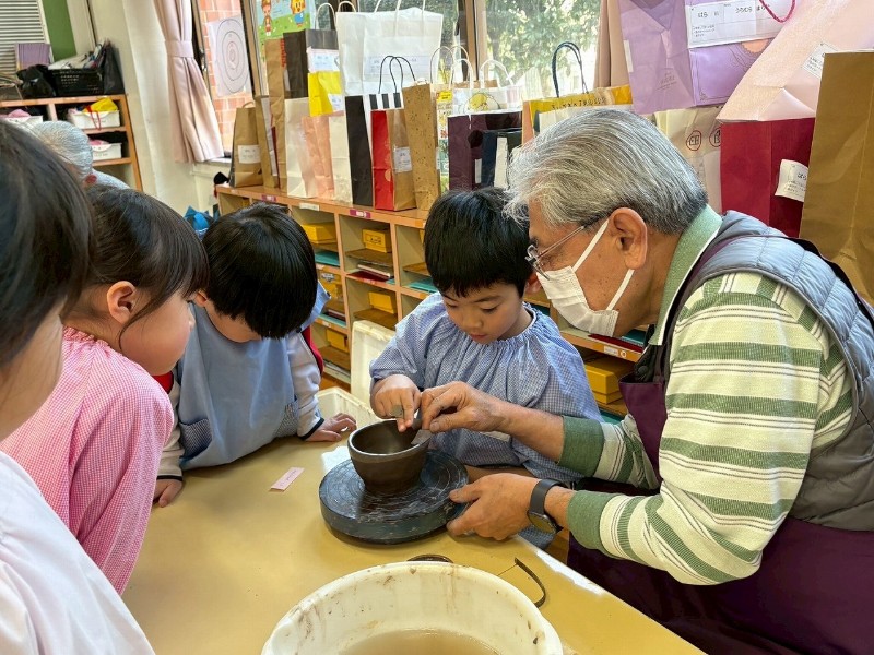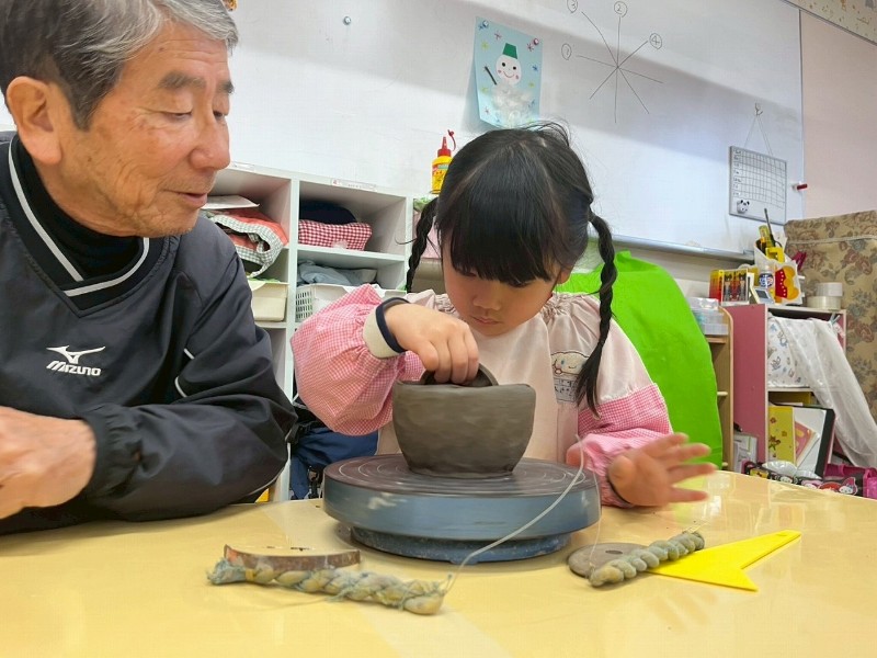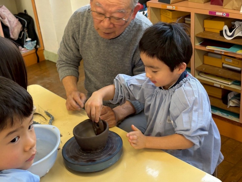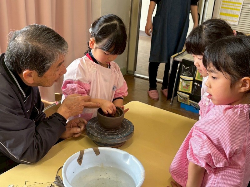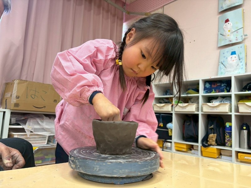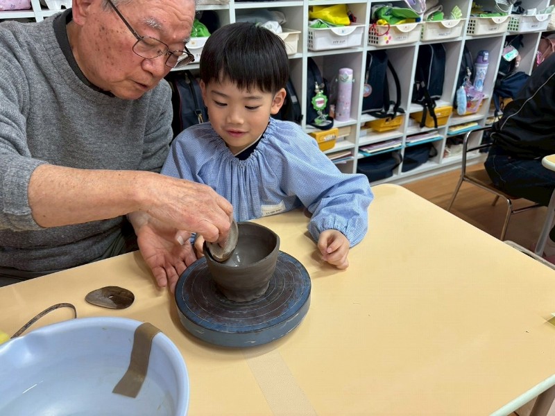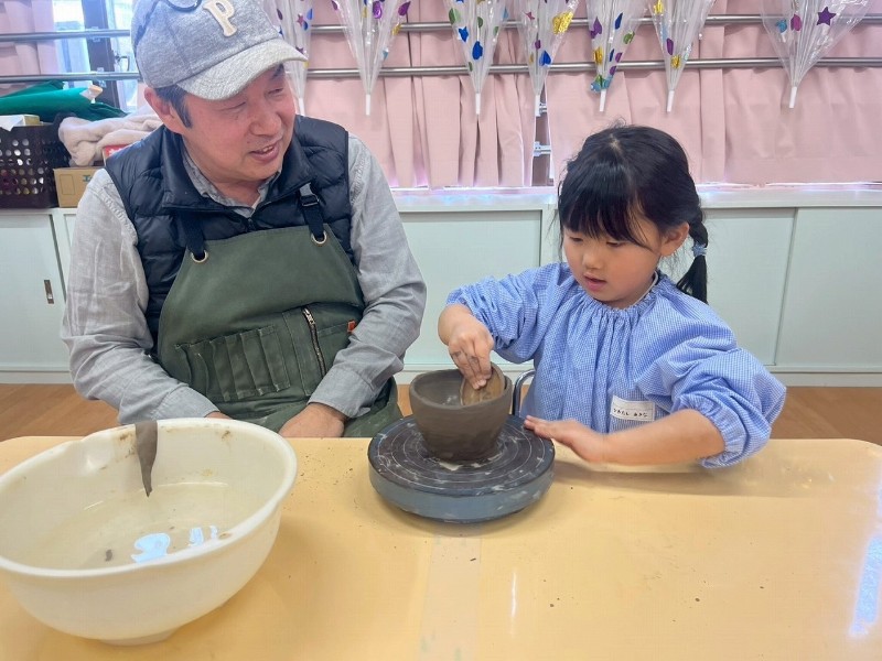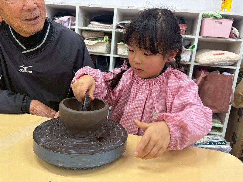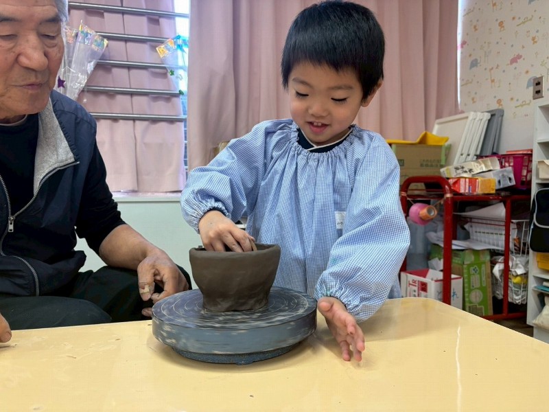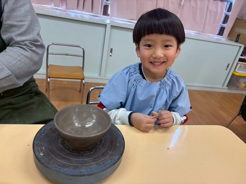 1回目はお家のかたと一緒にお皿を作り、2回目は自分ひとりでコップ作り、そして3回目の今回は、ろくろ体験をしながら『おちゃわん』を作りました。世界に一つだけの、自分のお茶碗☆焼き上がりが楽しみです☆子どもたちの真剣な表情や楽しそうな笑顔、どちらも見られ嬉しく思いました。津屋崎窯のトンキー先生をはじめ、お手伝いのおじいさま方々ありがとうございました♡