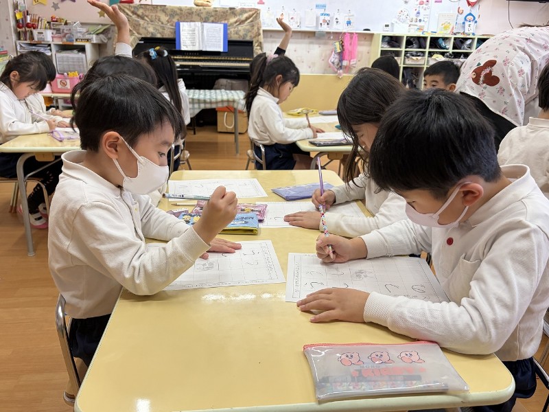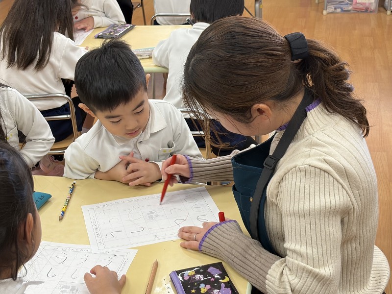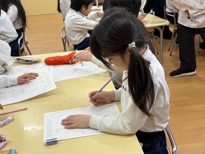 「もうすぐ1年生」というキーワード☆やる気満々のこどもたちは集中して取り組んでいました。硬筆の原先生から、たくさんの花丸を書いてもらいやる気スイッチもマックスへ☆