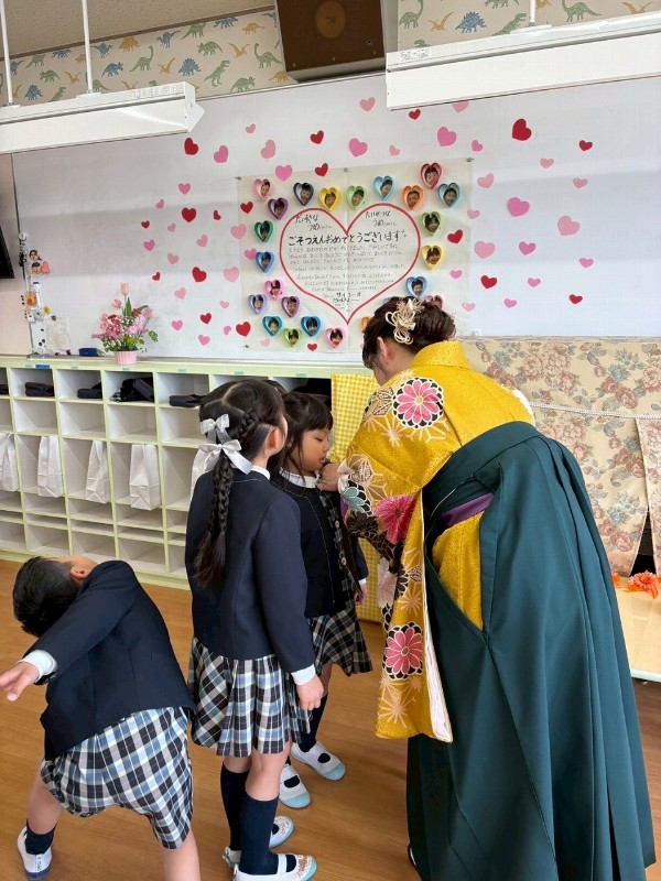年長組さんが、新たな一歩を踏み出しました。寂しくて泣いてしまう子もいましたが、小学校への期待を胸に笑顔で巣立っていきました。これからも元気に楽しく過ごしていって欲しいと願うばかりです。年長組さん!ご卒園 おめでとう!!せんせいたちはいつでも、いつまでもみんなのみかた☆です。