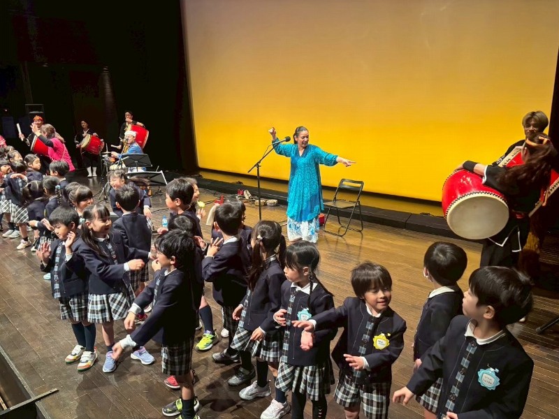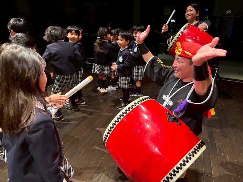 最後は、舞台に上げていただき、太鼓を叩いたり一緒に踊ったりと楽しい時間を過ごすことができました。