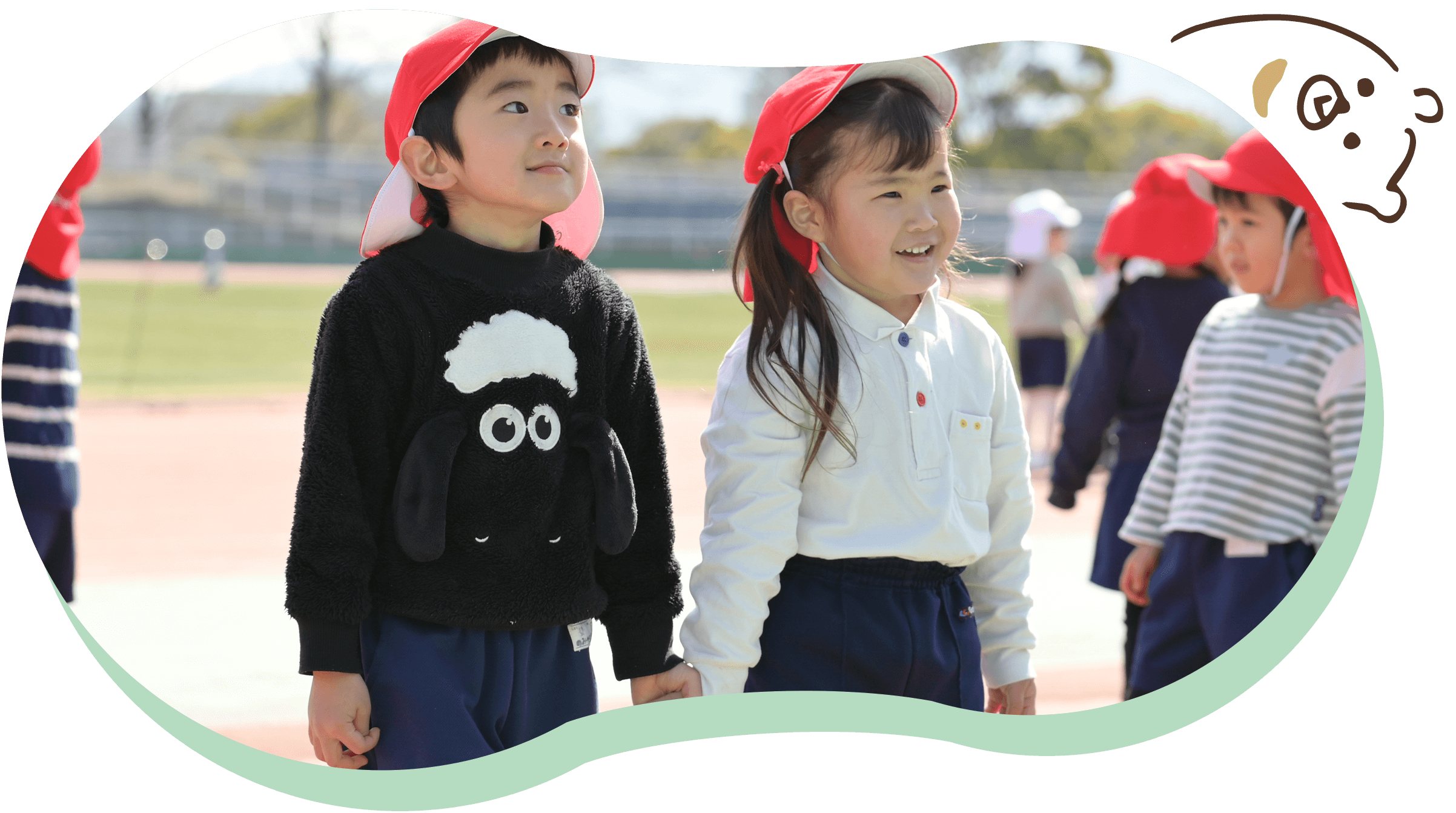 また、広々とした園庭で、自然と触れ合い、たくさん遊びながら学びを深めていけるよう、